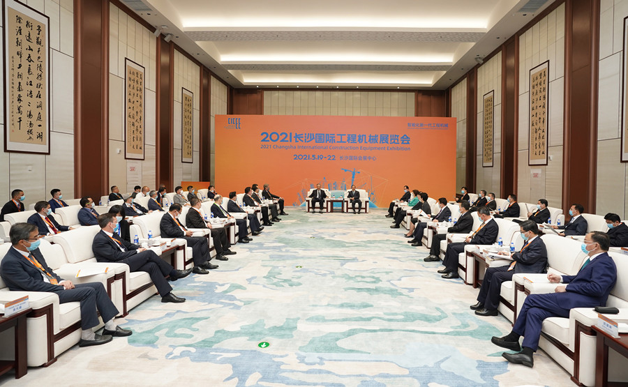 会见中,许达哲向各位嘉宾的到来表示欢迎,他说,在习近平总书记的亲切关怀和指导下,湖南全省上下正以打造“三个高地”、践行“四新”使命为共识,奋力把总书记为我们擘画的宏伟蓝图变为现实。湖南的工程机械产业基础扎实、龙头企业云集、智能化水平高、科技创新活力四射、“国际范”十足,是我们打造“三个高地”的重要着力点之一。此次展览会较之往届前来参展的企业数、全球工程机械50强企业数实现了“双提升”,这既是湖南工程机械产业影响力得到行业广泛认可的力证,也体现了大家对湖南疫情防控、营商环境优化等方面工作成效的充分肯定。当前,国家“十四五”规划中纳入不少中部元素、制造业元素、湖南元素,中央出台了《关于新时代推动中部地区高质量发展的指导意见》,长沙工程机械集群、株洲先进轨道交通装备集群同步纳入国家25个先进制造业集群,这些都将为包括工程机械产业在内的湖南先进制造业发展带来重大战略机遇和一系列政策利好。我们真诚希望通过长沙国际工程机械展览会这一窗口,同国际国内各有关方面开展广泛而深入的产业合作、项目对接、协同创新,同时以工程机械为媒,不断拓宽湖南对外交流合作的领域和范围,共同推动制造业高质量发展、振兴实体经济,实现互利共赢。