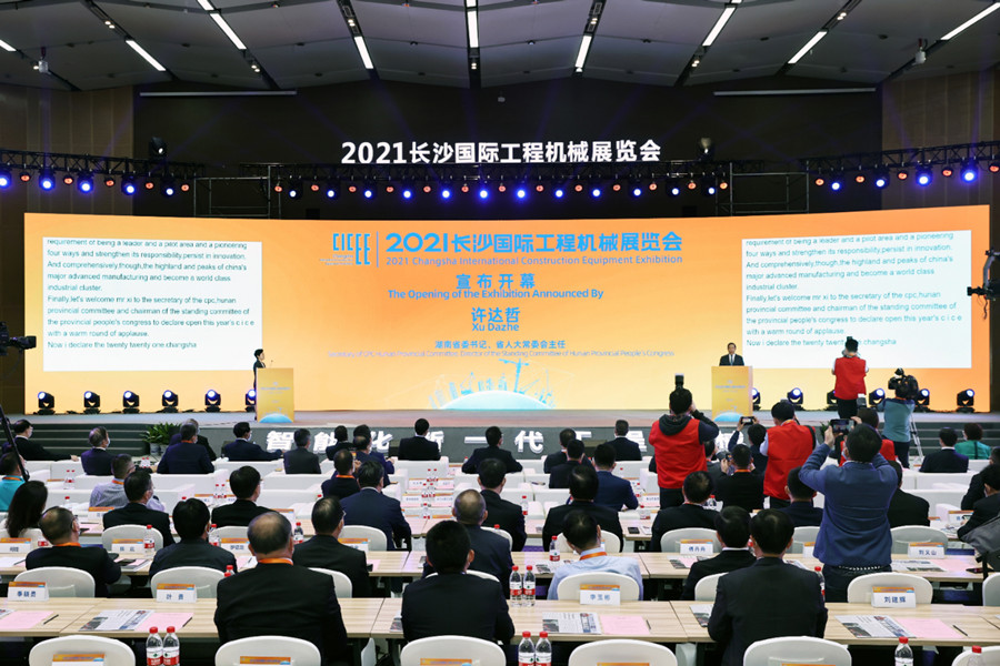 5月19日上午,2021长沙国际工程机械展览会在长沙国际会展中心开幕。省委书记、省人大常委会主任许达哲宣布展览会开幕,省委副书记、省长毛伟明在开幕式上致辞。