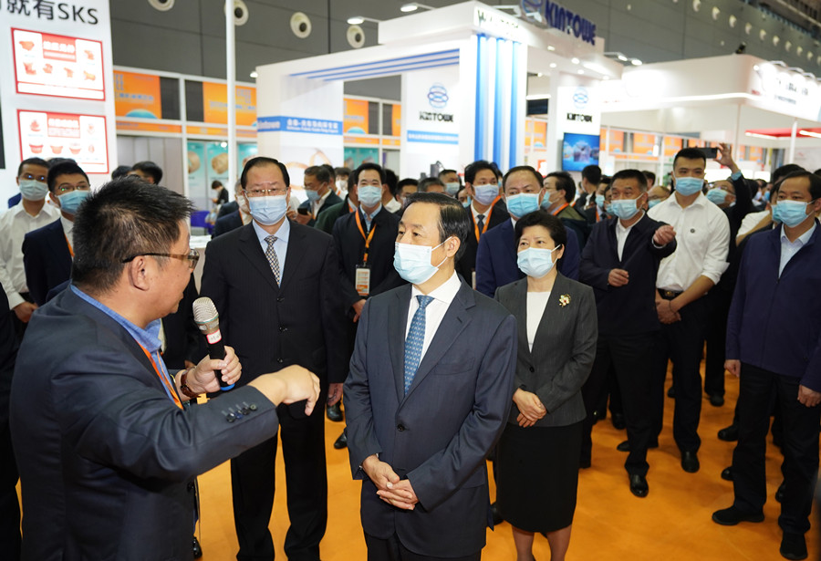 5月19日上午,2021长沙国际工程机械展览会在长沙国际会展中心开幕。省委书记、省人大常委会主任许达哲宣布展览会开幕,省委副书记、省长毛伟明在开幕式上致辞。开幕式前,许达哲、毛伟明等会见了参会嘉宾代表,并共同参观了展馆。